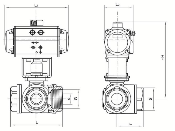 2、氣動裝置與閥門的連接尺寸應符合ISO5211(底部)、 GB/T12222 和 GB/T12223 的規(guī)定。