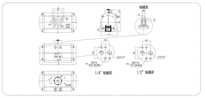 執(zhí)行器和閥門的接口符合ISO5211,DIN3337;執(zhí)行器和控制閥(電磁閥等)的接口符合 NAMUR;執(zhí)行器和信號單元(限位開關(guān),定位器)的接囗符合 NAMUR;